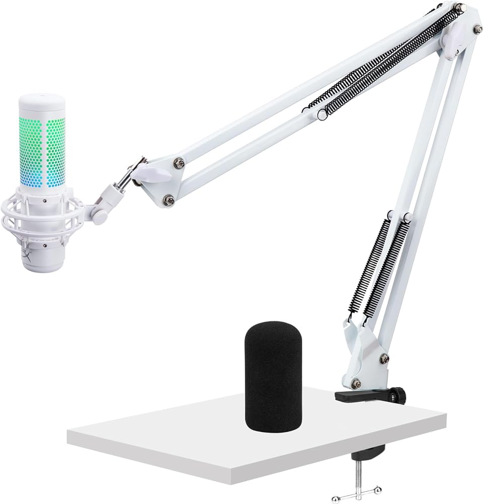 لذراع HyperX Quadcast S Boom - ذراع ميكروفون مطور مع غطاء إسفنجي للميكروفون يقلل من ضوضاء الرياح، ذراع ذراع أبيض لـ Hyperx Quadcast، محول 3/8 بوصة إلى 5/8 بوصة متوافق مع الطرز الأخرى