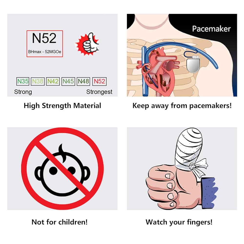 【تحذير】- كن حذرًا مع المغناطيسات لأن المغناطيسات القوية يمكن أن تؤذي أصابعك. عند تفكيك المغناطيسات الكبيرة، تأكد من القيام بذلك بالطريقة الصحيحة. إذا قمت بذلك بشكل خاطئ، يمكن أن تصبح المغناطيسات قوية للغاية وتنكسر بسهولة. كما يجب الابتعاد عن جهاز تنظيم ضربات القلب والأطفال في حالة حدوث ضرر.