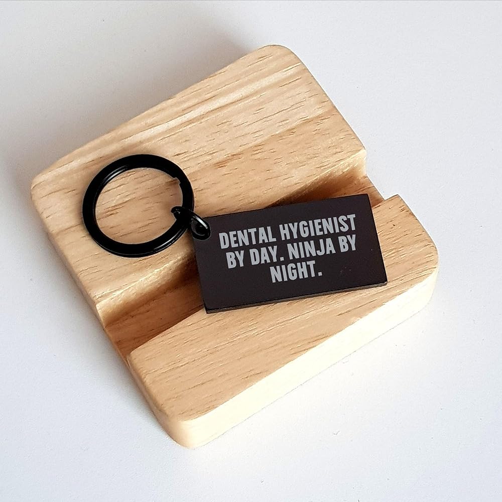 Celebrate the dental hygienist in your life with our unique Keychain featuring the quote, 'Dental Hygienist By Day. Ninja By Night.' This thoughtful gift is perfect for any occasion, especially Christmas, and shows you care about their dedication to their craft.