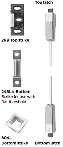 Convenient and affordable door fixture options. Single and double door applications The product is manufactured in United States. Standard bottom latch compatible with latch track thresholds.