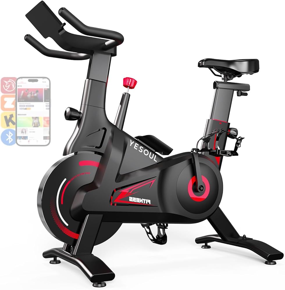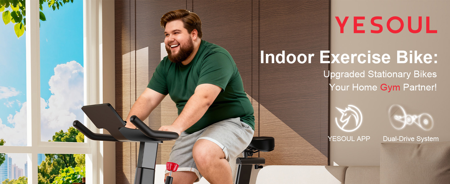 دراجة تمرين YESOUL للمنزل - دراجة ثابتة مقاومة مغناطيسية صامتة مع إطار مثلث ثابت، سعة 300 رطل، محرك ثنائي المرحلة وحذافة معدنية، تطبيق ذكي مع طرق ذات مناظر خلابة وفصول حية