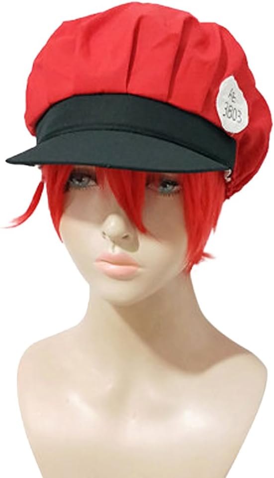 شعر مستعار بتصميم خلية الدم الحمراء مع قبعة باللون الأحمر من JCvCX Anime Cellat Work, قبعة., One Size