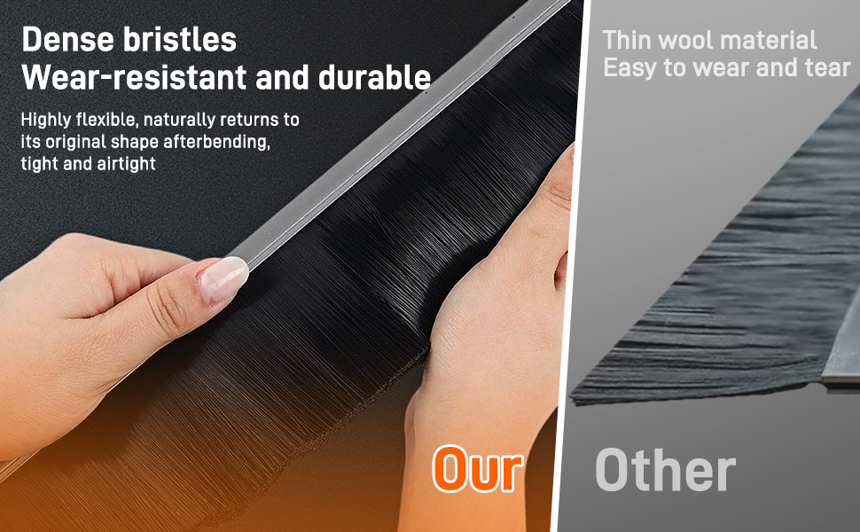 【تأثير الختم】يتم تركيب الشعيرات بشكل صغير ككل، والتي يمكن أن تسد الفجوة بين الجزء السفلي من الباب والجزء العلوي من العتبة أو سطح الأرض بشكل فعال، مما يقلل بشكل كبير من تسلل الضوء والهواء والرياح والمطر والثلج. يمكنه التحكم بشكل فعال في اختراق الغبار والدخان. بالإضافة إلى منع غزو الحشرات مثل البعوض والذباب، فإنه يتمتع أيضًا بتأثير عزل داخلي معين، مما يقلل بشكل فعال من فقدان الحرارة.