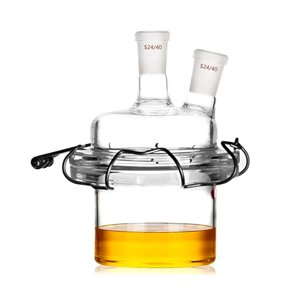 Deschem 24/40 Glass Cylindrical Reactor 2-Neck Single Neck Flat Bottom Lab Reaction Vessel W/Lid & Clamp