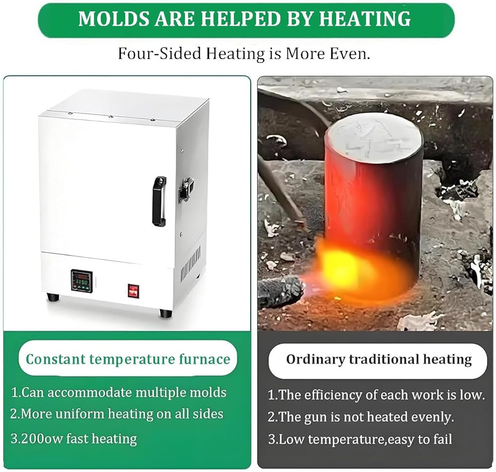 4. The internal furnace size is 16x16x13.8cm, with a large capacity that can accommodate multiple gypsum molds for heating at the same time