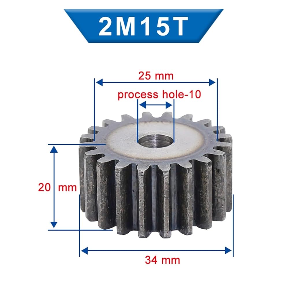 ترس محرك فولاذي شديد التحمل ترس مسطح 2M15T أسنان القطر الخارجي 34 مم تتحمل 10 سمك محرك فولاذي منخفض الكربون 20 لجزء النقل