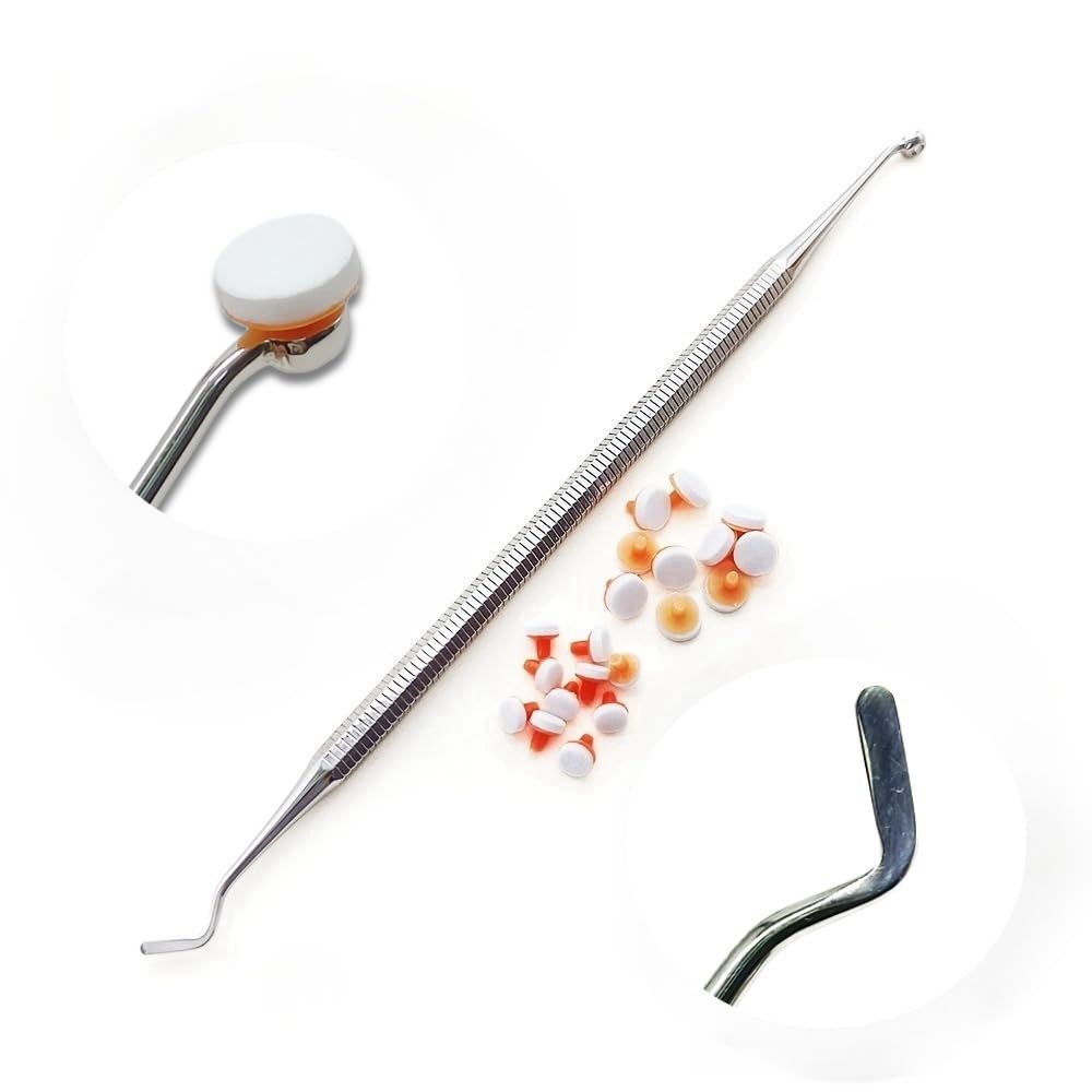 Dental Assortment Kit Tool Sculpt Pad Pads Composite Resin Filling Spatula Mixing Handle Foam Pads L/S Modeling Instrument --- Quick Foam Pad Handle Trimmer Spatula :The quick foam pad handle trimmer spatula is designed to efficiently and precisely trim excess dental resin, saving time and effort during the filling process --- Non-stick placement of anterior composites --- Creation of smooth and even surfaces --- Professional esthetic results while saving you time --- Dia of Foam Pad Large:6mm, Dia of Foam Pad Small:4mm --- The handle is high quality,and it can be sterilized at high temperature --- The tips can be sterilized with disinfectant -- Quantity: 1 piece