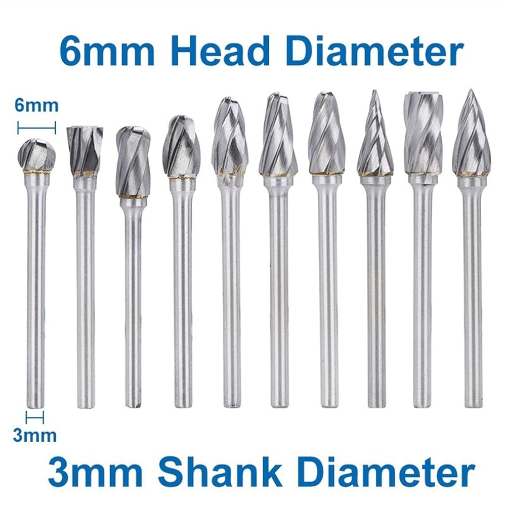 10pcs 3mm Shank Rotary Burr 6mm Diameter Single Cut Rotary File Carbide