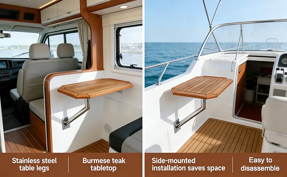 —— تصميم ناتئ مثبت على الحائط موفر للمساحة قم بزيادة المساحة الأرضية الثمينة على القارب أو عربة سكن متنقلة من خلال تصميمنا المبتكر المثبت على الحائط الكابولي. تمتد الطاولة إلى الخارج من الجدار، مما يخلق مساحة عمل ثابتة أو عائمة أو منطقة لتناول الطعام دون شغل عقارات أرضية ذات قيمة. تحافظ بصمتها المدمجة على منطقة معيشتك مفتوحة ودون عائق، وهي مناسبة تمامًا للأماكن الضيقة.