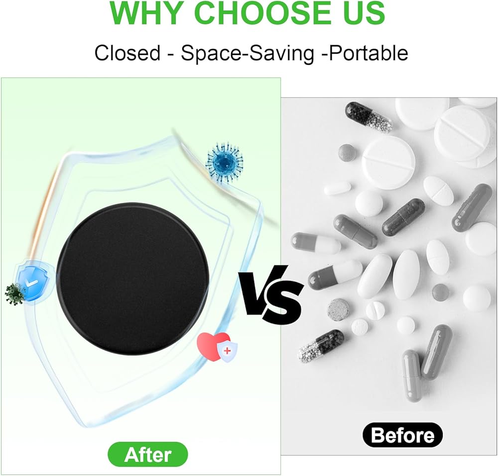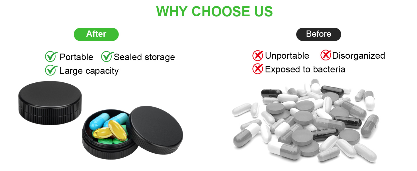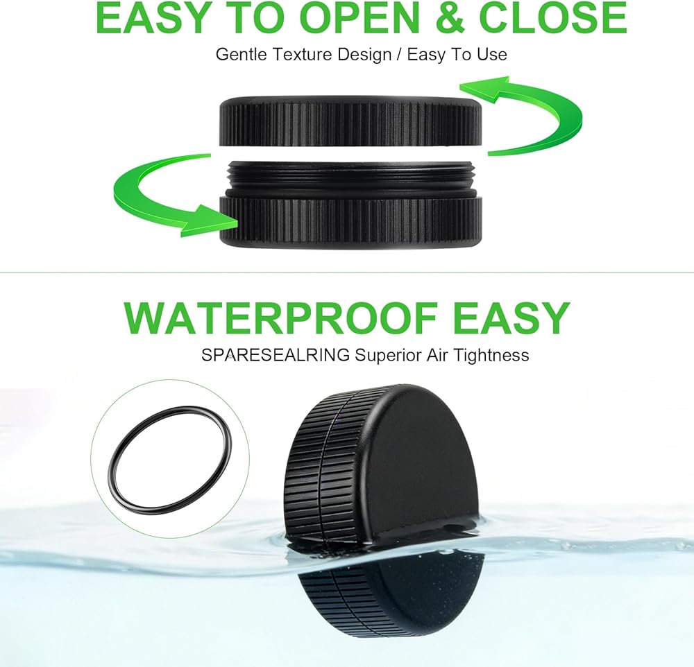 • 【مقاومة للماء ومحكمة الغلق】- حلقة دائرية من السيليكون تخلق إغلاقًا محكمًا، وتحمي الحبوب والأشياء الثمينة من الرطوبة والغبار والملوثات للحفاظ على نظافة أدويتك.