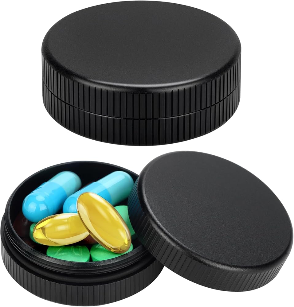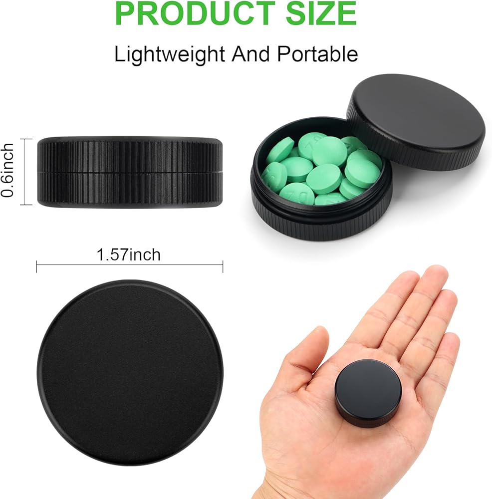 علبة حبوب دواء صغيرة، عبوتين من حاويات تنظيم الأدوية المصنوعة من الألومنيوم لجيب المحفظة، صندوق حامل فيتامينات معدني للسفر للاستخدام اليومي، علبة طبية صغيرة محمولة مقاومة للماء للتخييم والعمل - أسود