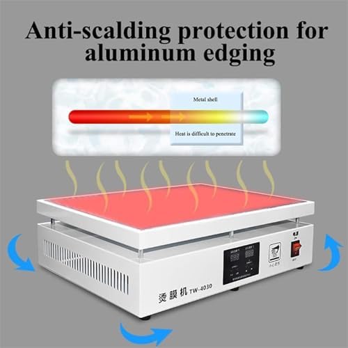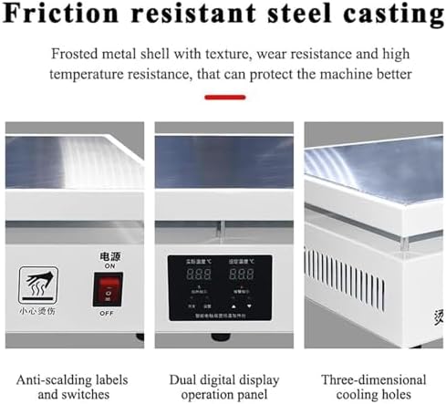 • LARGE CAPACITY HEATING ALUMINUM PLATE: The top aluminum plate of the manual cellophane wrapping machine is a square heating plate of (300×400mm), which has large area and can be used for hot film packing of multiple packages.