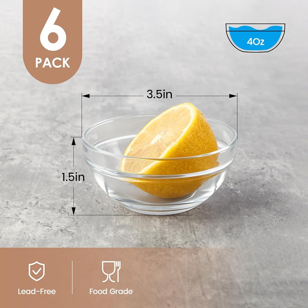 - مجموعة أوعية زجاجية صغيرة: تحتوي على 6 أوعية زجاجية صغيرة. هذه الأوعية الزجاجية الصغيرة بسعة 118 مل هي حجم مثالي للتوابل والتوابل والمكونات والإعداد والحلوى والصحاري والآيس كريم.
