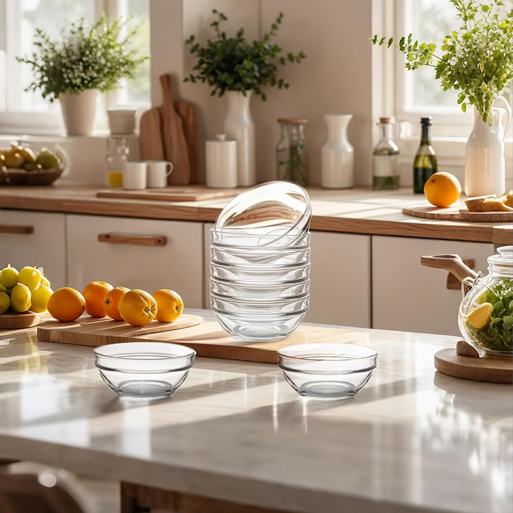- تصميم واضح ومريح: هذه الأوعية الزجاجية الصغيرة قابلة للتكديس، مما يتيح تخزينًا مرتبًا ومنظمًا. التصميم الشفاف عالي التحمل - إنه شفاف يسمح لك برؤية ما تضعه في كل وعاء بالضبط، وتجنب الارتباك.