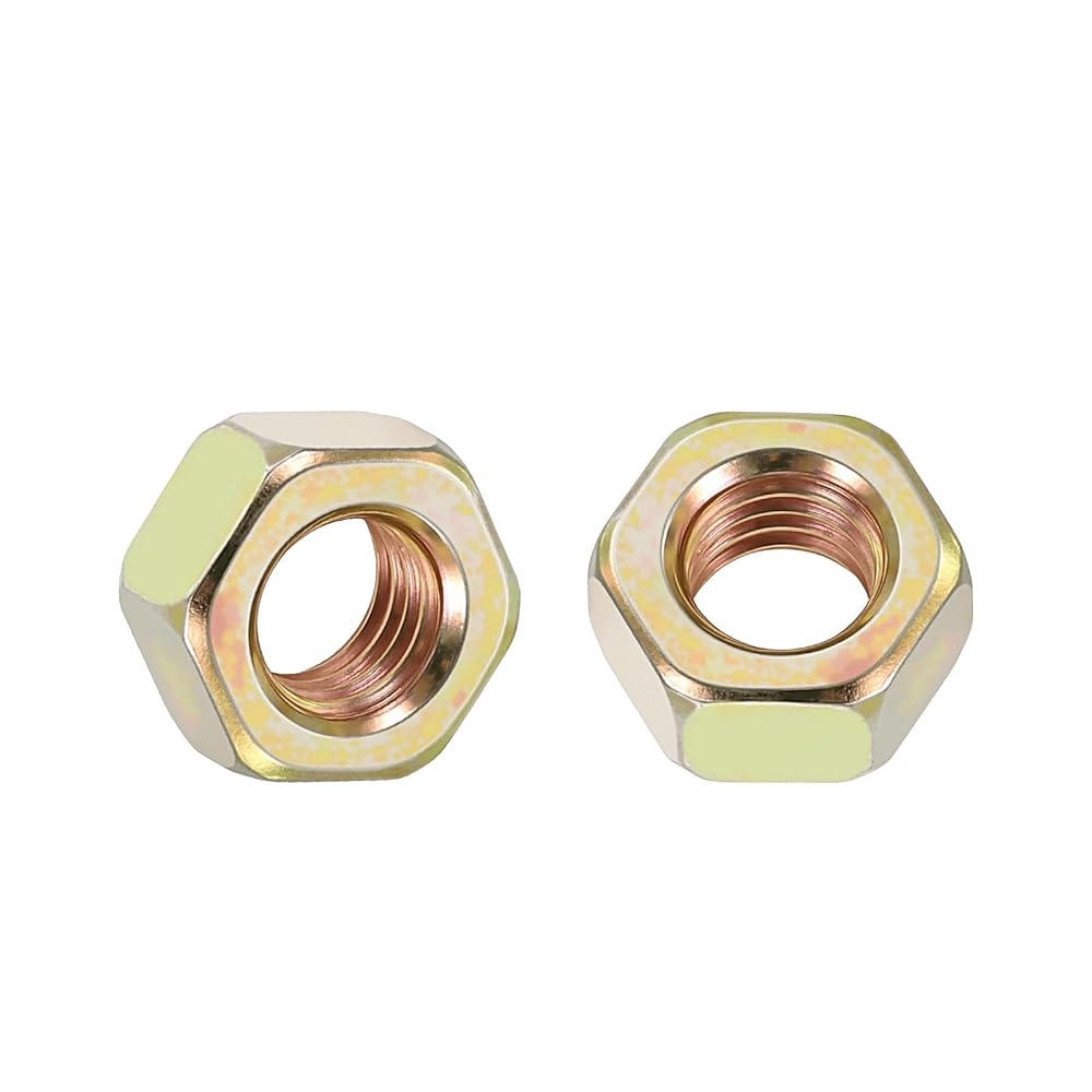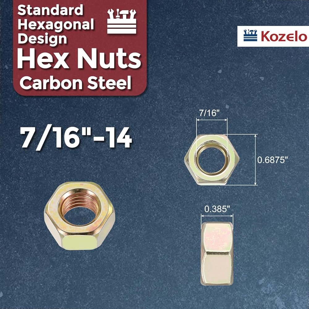 10 قطع من صواميل سداسية - [7/16 بوصة - 14] صواميل من الفولاذ الكربوني من الدرجة 8 للإصلاح والتجميع الميكانيكي، صامولة خيط خشن قياسية، أصفر، ASME/ANSI B 18.2.2