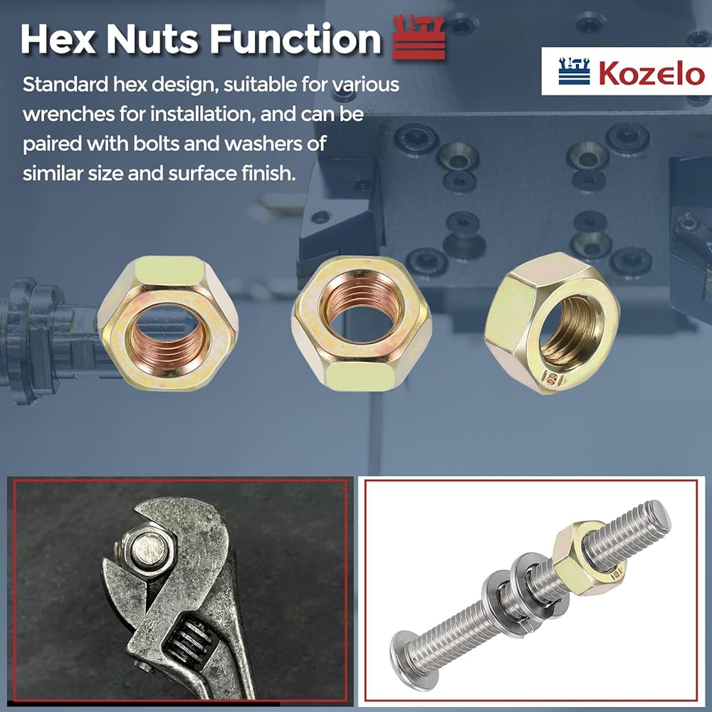3- التطبيق - المكسرات السداسية مناسبة للتجميع والإصلاح العام، وكذلك المعدات الصناعية والآلات الزراعية والأدوات وغيرها من أعمال الصيانة والتجميع الميكانيكية. كما أنها مناسبة للمعدات الداخلية/الخارجية التي تتطلب مقاومة للتآكل، وبناء النماذج، وإصلاح صواميل دولاب الموازنة بالمنشار الجنزيري، والعديد من التطبيقات الأخرى. بالإضافة إلى ذلك، يمكن إقرانها بمسامير وغسالات ذات حجم مماثل وتشطيب سطحي للتثبيت الآمن.