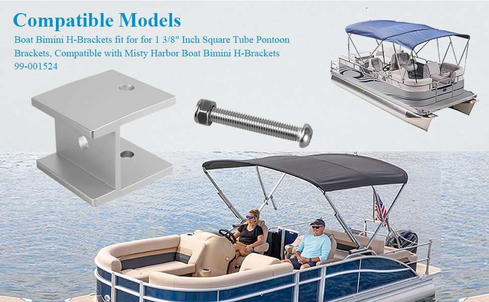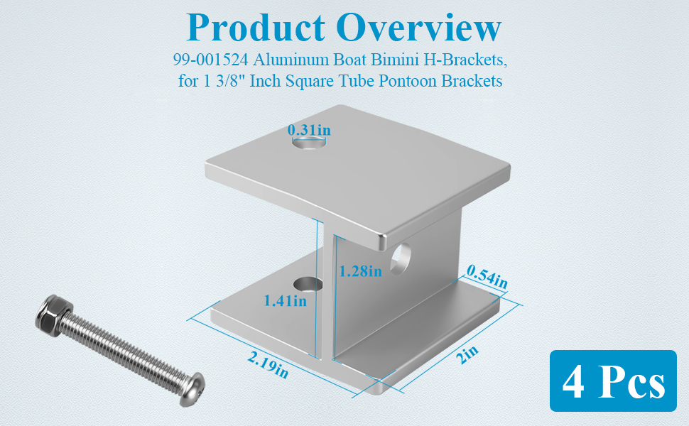 نظرة عامة على المنتج: 4 قطع 99-001524 أقواس بيميني H للقارب من الألومنيوم، لأقواس عائمة لأنبوب مربع مقاس 1 3/8 بوصة