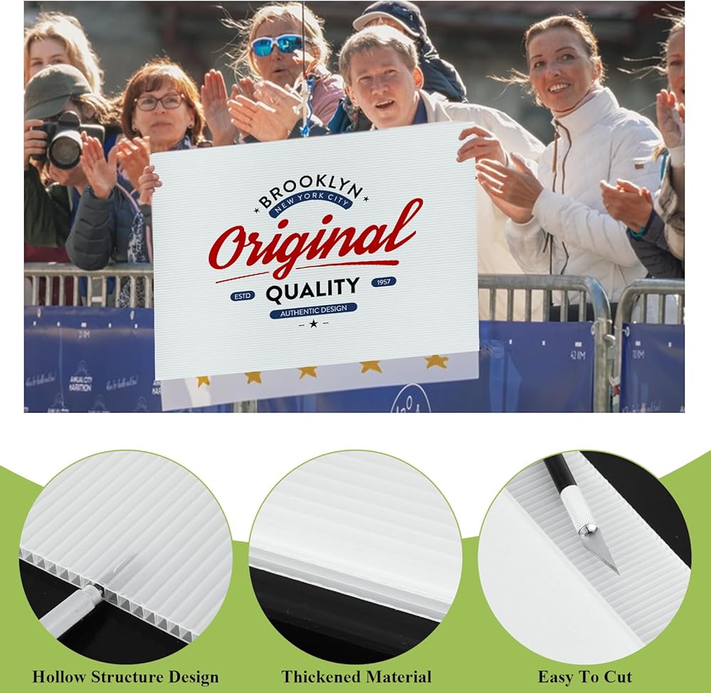 You will get 30 PCS white corrugated plastic sheets, ensuring you will not run out too soon; Whether constructing yard sale signs or experiencing DIY creations, these sheets offer ample supply for your needs