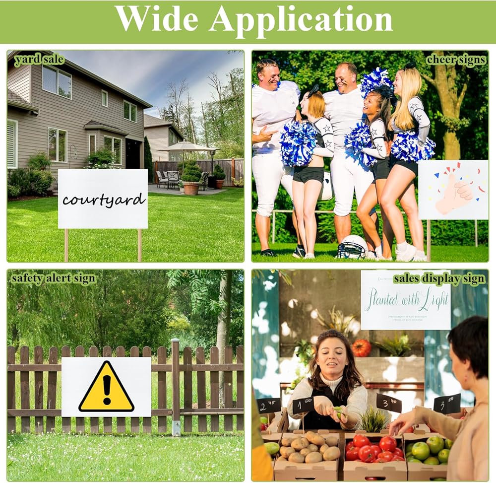 • Wide Applications: These white plastic sign board provides ample canvas for a variety of projects and are perfect for advertising, sales, open houses, parties, commercials, lawn signs, etc., to display on your lot, front yard, lawn, garden, or any area with grass