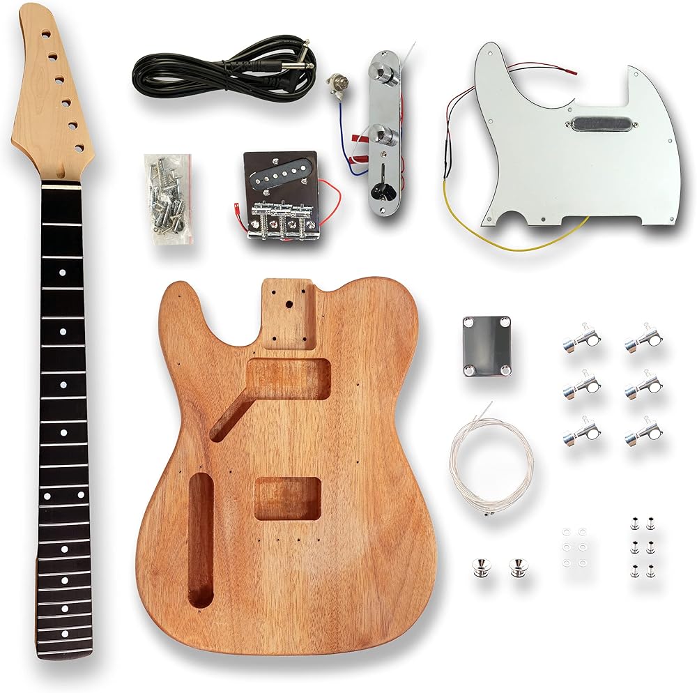 * unfinished electric guitar kits * okoume wood Body * maple neck & composite ebony fingerboard * white pickguard and all electronic parts * it is easy to build your own electric guitar After your purchase,we will send the instructions(PDF) to you via Amazon message.