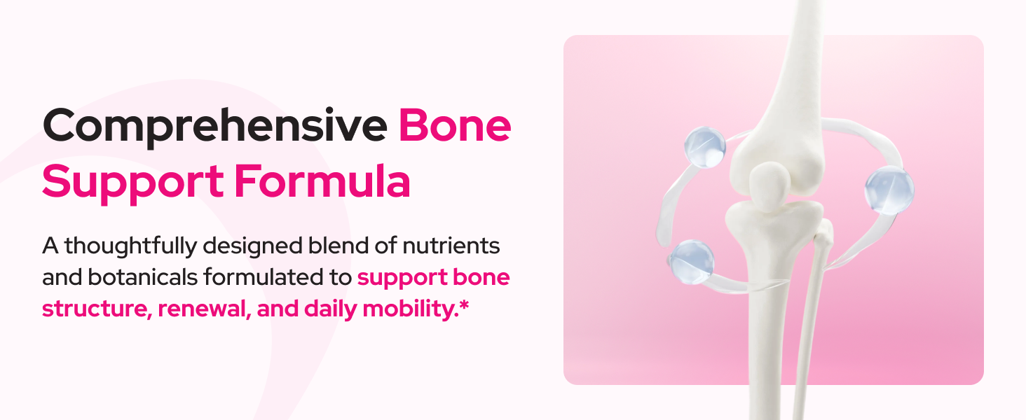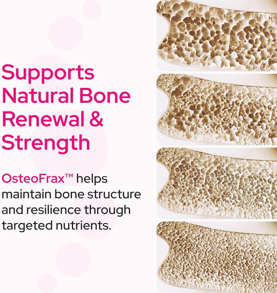 دعم عظمي نباتي ممتاز - يشمل OsteoCaf (Dalbergia sissoo) وCalzbone (Cissus Quadrangularis)، نباتات مدروسة جيدًا تدعم قوة العظام وصحة العظام بشكل عام للنساء.