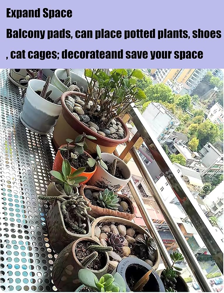 This stainless steel perforated safety net is an ideal solution for balcony and stair protection, designed to enhance safety and aesthetics in your home. Made from high-quality 304 stainless steel, this durable net is resistant to corrosion, ensuring long-lasting performance in any environment. The elegant silver finish and unique round hole design, featuring a 10mm aperture and 5mm hole spacing, not only provide security but also add a modern touch to your living space. With a thickness of 0.8mm, this sturdy yet lightweight safety net is easy to install. It comes with plastic cable ties that securely attach the net to various surfaces, including balcony railings and staircases, providing peace of mind for families with children or pets. Additionally, the anti-theft window backing plate allows you to place potted plants, succulents, or shoes safely, effectively maximizing your available space. This customizable safety net is perfect for a wide range of applications, including balconies, railings, stairs, gardens, windows, courtyards, and terraces. It's not just a protective measure; it's a practical addition to your home that enhances both safety and functionality. The package includes one protective net along with essential accessories like cable ties and gloves for a hassle-free installation experience. Please note that only the stainless steel mesh is included in the purchase; other items shown are for display purposes only. Invest in your home safety with this reliable and stylish stainless steel safety net.