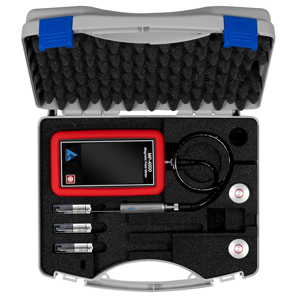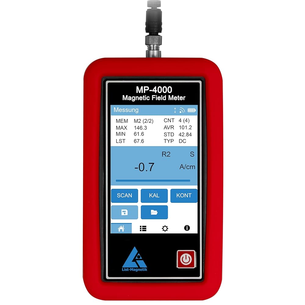 Discover precision magnetic field measurement with this advanced handheld meter, designed for industrial and environmental monitoring applications. This versatile device measures both AC and DC magnetic fields up to 40,000 A/cm with exceptional accuracy. Featuring a user-friendly LCD touchscreen interface and innovative probe electronics, it captures measurements at frequencies up to 200 kHz, making it ideal for analyzing pulse fields as brief as 0.1 milliseconds. The transverse field probe offers precise measurements perpendicular to the probe tube direction, while the compact design (5.91 x 3.35 x 1.38 inches) ensures easy handling. With multiple measurement units (A/cm, Gauss, Tesla, Oersted), 10,000-measurement storage capacity, and wireless connectivity for Windows, iOS, and Android devices, this meter delivers professional-grade magnetic field analysis. Powered by three 1.5V AA batteries providing 25 hours of operation, it's perfect for industrial magnetic field measurement, flux measurement, and field line analysis. The multilingual interface supports English, German, French, Italian, and Spanish, making it accessible for international users.