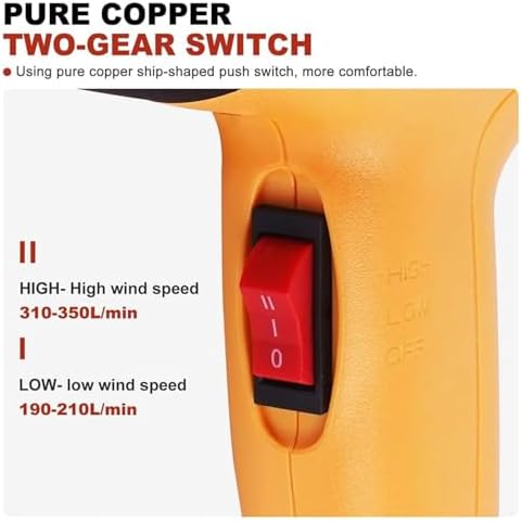 Adjustable Air Speed: The heat shrink gun handle has an air speed switch, allowing you to adjust the airflow for easy shrinking.