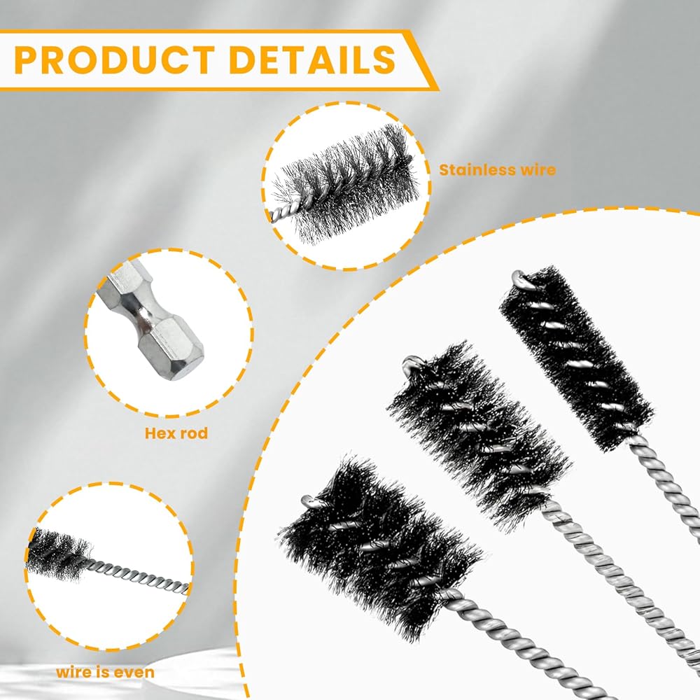 【تنظيف بدون مجهود】: تتميز هذه الفرش بهيكل حلزوني مزدوج مع أسلاك دقيقة من الفولاذ المقاوم للصدأ وساق سداسية، وتوفر حلاً مبتكرًا للتنظيف السريع والفعال.