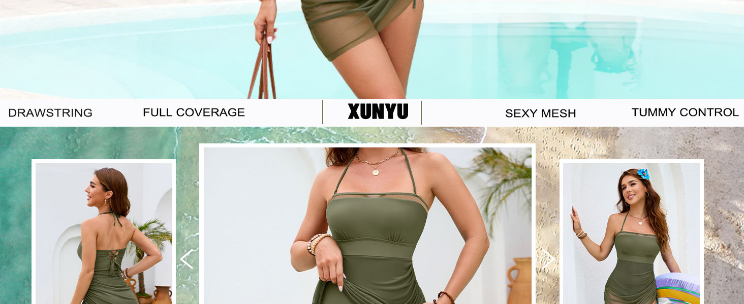 فستان سباحة لملابس السباحة النسائية: بدلات سباحة للنساء تجمع بين تغطية غطاء ملابس السباحة الشبكي ووظيفة بدلة السباحة المكونة من قطعة واحدة للنساء. تغطية كافية وتصميم مكشكش يجتمعان مع لمسة من الجاذبية