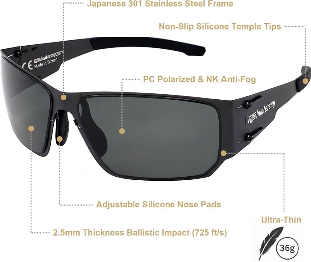 HTS HUNTERSKY M02 0.6 رقيقة يابانية 301 من الفولاذ المقاوم للصدأ خفيفة الوزن MILSPEC 2.5 مللي متر سماكة تأثير الاستقطاب نظارات مضادة للضباب