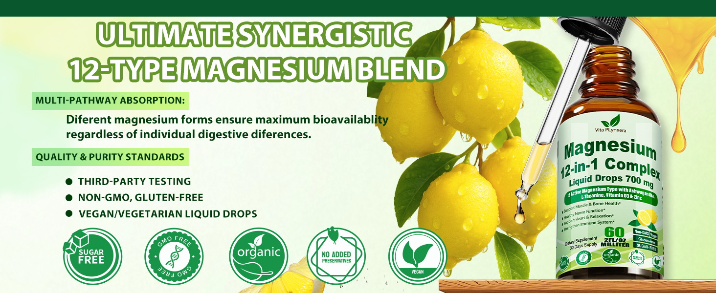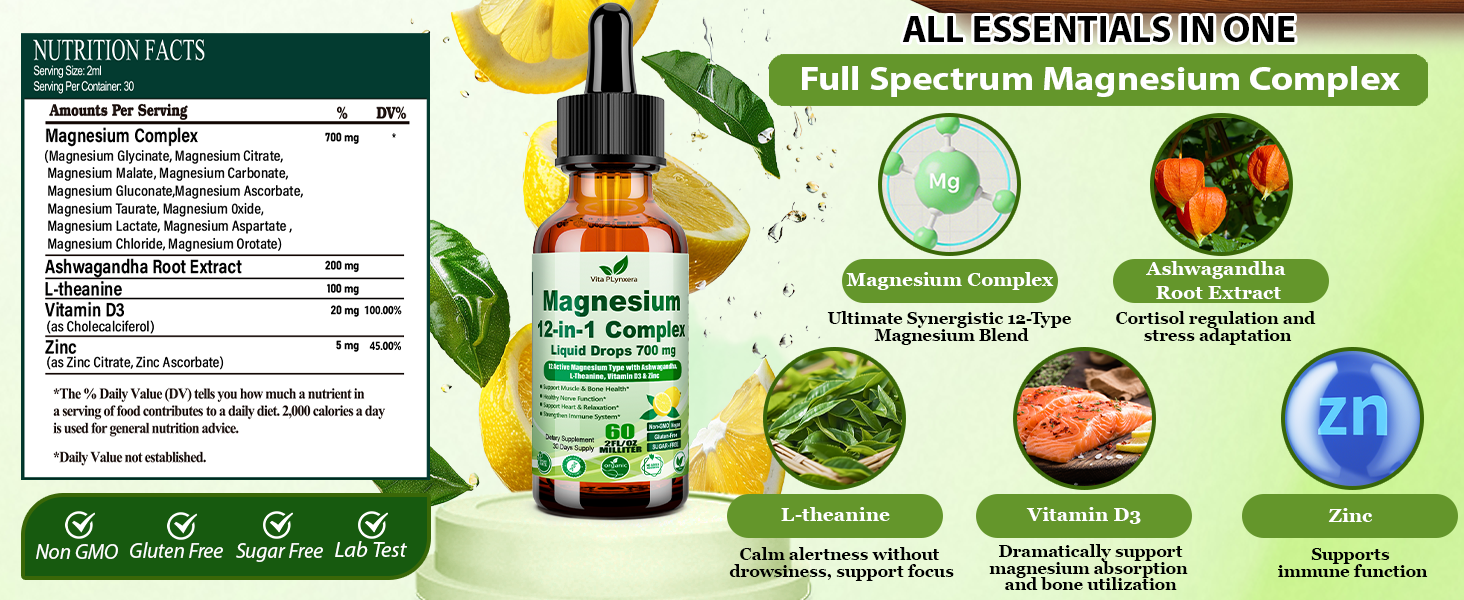 🚀 12 في 1 قطرات سائلة من مركب المغنيسيوم: احصل على تغطية كاملة من المغنيسيوم مع 12 شكلًا مختلفًا في مكمل سائل واحد - مما يوفر 700 مجم من 12 في 1 من جليسينات المغنيسيوم عالية الامتصاص، والسيترات، والجلوكونات، واللاكات، والكربونات، والأسكوربات، والمالات، والتورات، والأكسيد، والأسبارتات، والأوروتات، والكلوريد من أجل امتصاص أفضل وصحة الجسم بالكامل. هذا ليس مجرد مكمل مغنيسيوم، بل هو حل كامل النطاق لعافية الجسم بالكامل