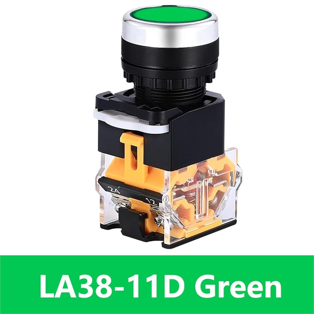 10 قطع مفتاح زر ضغط، 22 مم LA38 إعادة ضبط ذاتي القفل 1NO/1NC لحظية مع مؤشر LED خفيف 220 فولت (LA38-11D أخضر، إعادة ضبط)