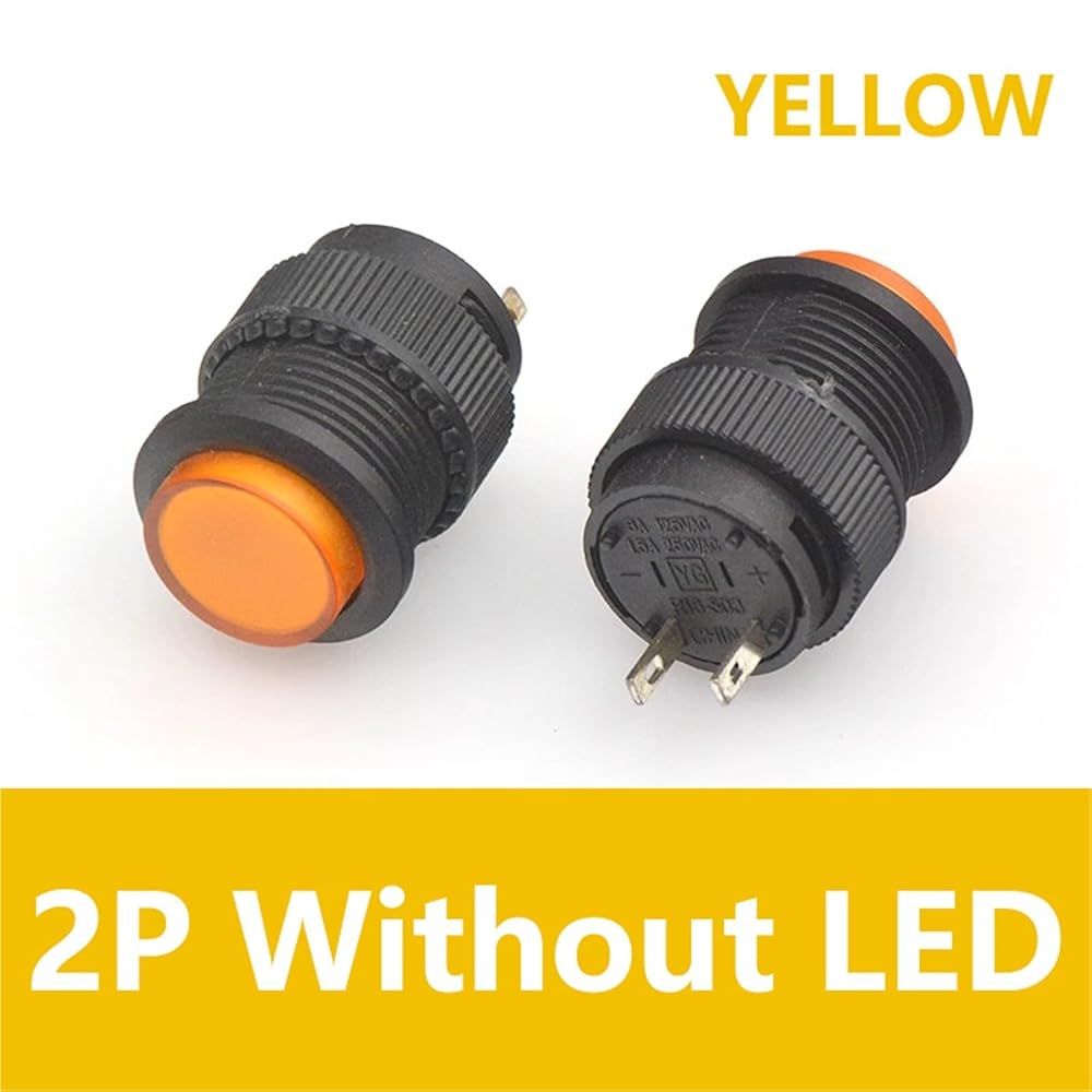 10 قطعة مفتاح زر الضغط، R16-503AD/R16-503BD زر التبديل Jog Reset ذاتي القفل مستدير 4/2Pin 16 مم مع ضوء (LED أصفر، غير مقفل)