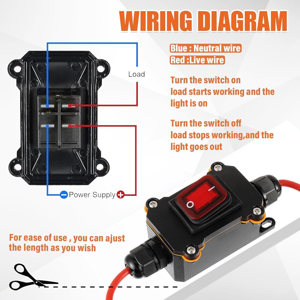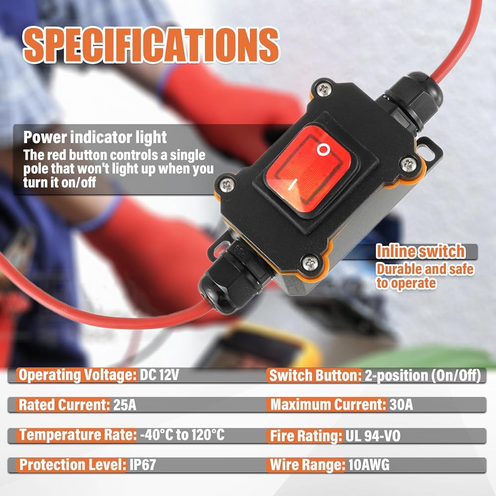 JAMHER DC 12V-24V Waterproof Inline Switch