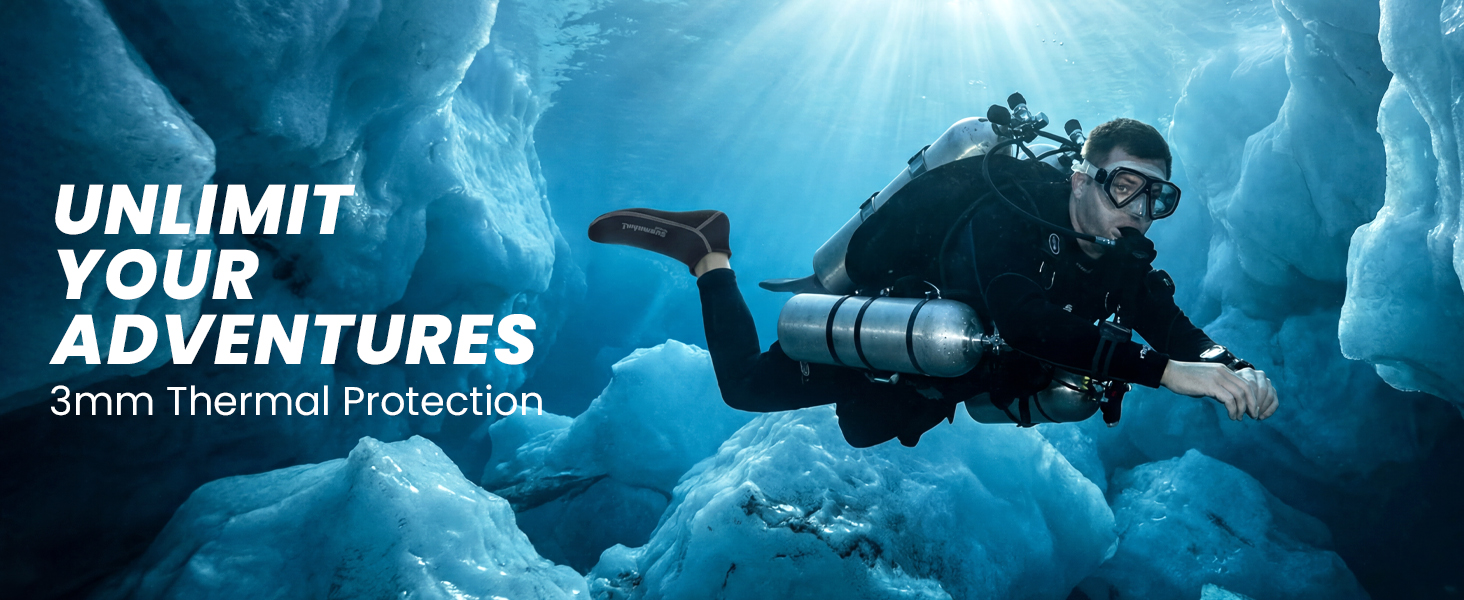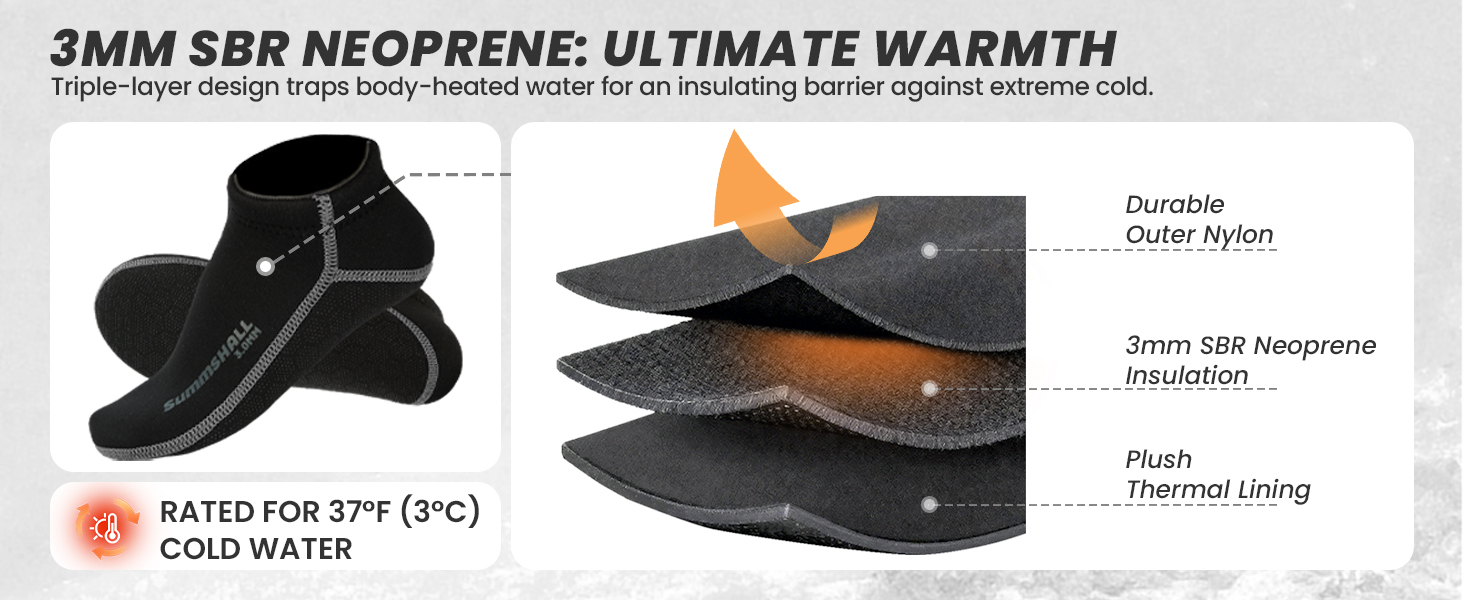 **ابق دافئًا في الماء البارد**: مصنوعة من النيوبرين الفاخر 3 مم، تساعد هذه الجوارب المصنوعة من النيوبرين على تقليل فقدان الحرارة والحفاظ على دفء قدميك بشكل مريح حتى في درجات حرارة الماء التي تصل إلى 54 درجة فهرنهايت. مثالية للغوص في الماء البارد أو الغطس أو ركوب الأمواج أو السباحة في بداية الموسم عندما تفشل الجوارب القياسية في العزل.
