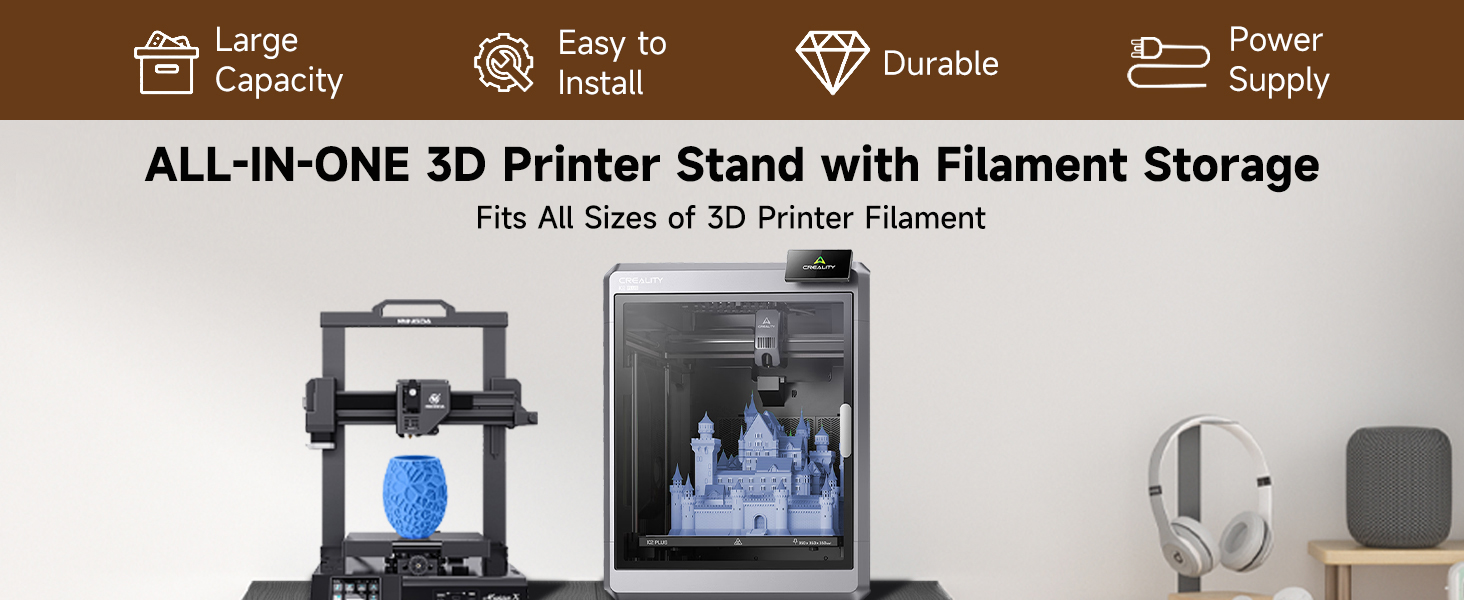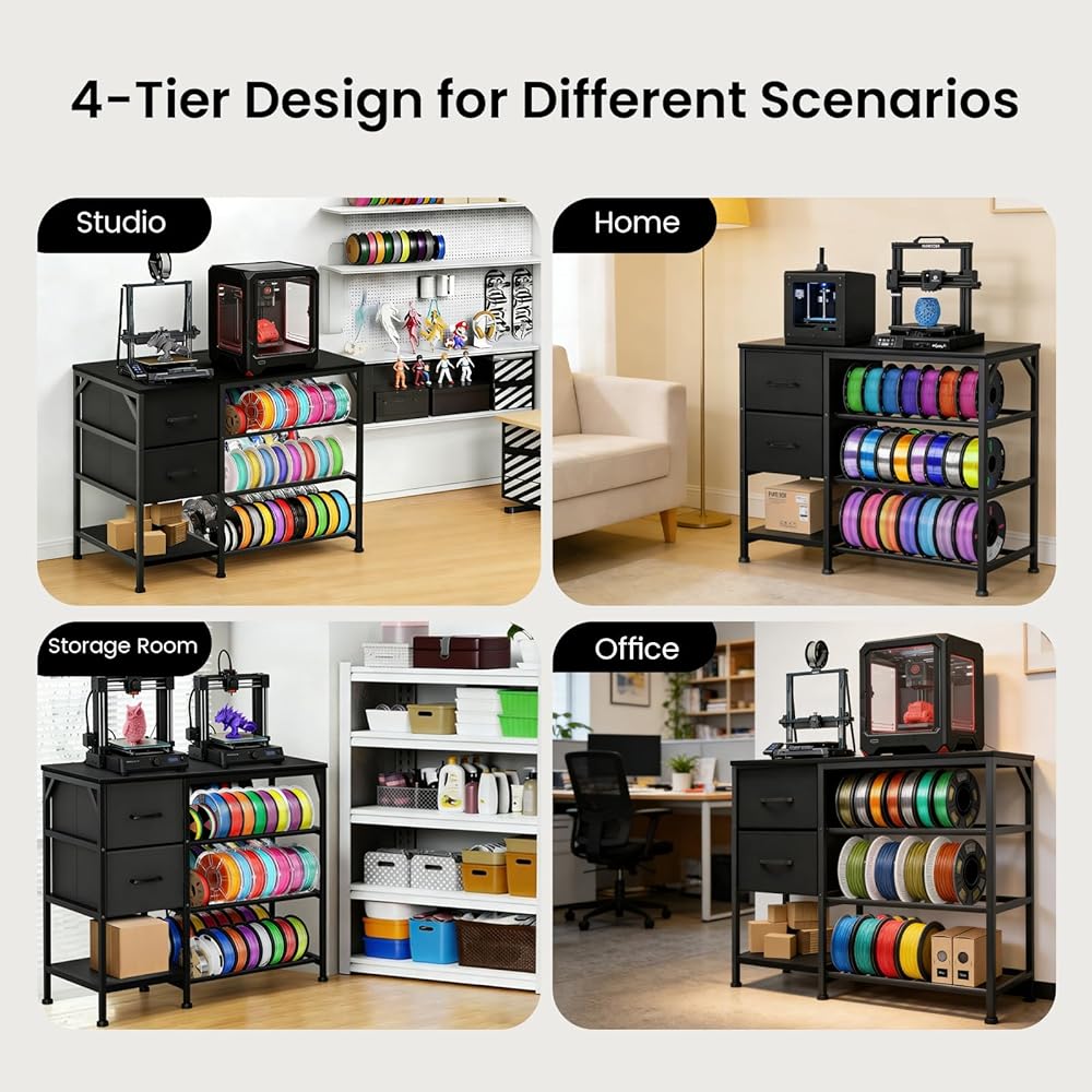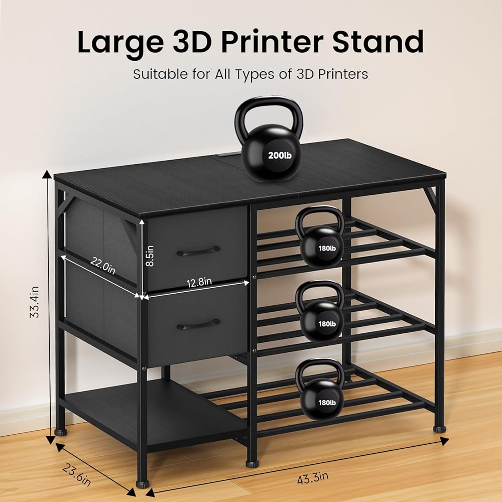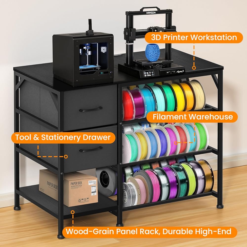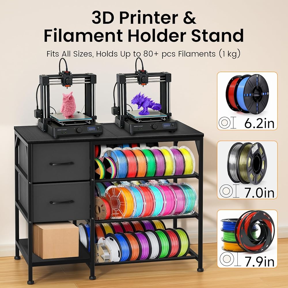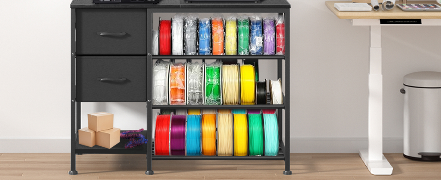 حامل طابعة ثلاثية الأبعاد متعدد الوظائف مع مساحة تخزين كبيرة: تم تصميم حامل الطابعة ثلاثية الأبعاد هذا حصريًا لتوفير التنظيم النهائي لجميع معدات الطباعة ثلاثية الأبعاد الخاصة بك. سطح الطاولة الفسيح يناسب ما يصل إلى طابعتين في وقت واحد ويتوافق مع جميع نماذج الطابعات ثلاثية الأبعاد تقريبًا، بينما يعمل رف الشعيرات الرأسي ثلاثي الطبقات على زيادة استخدام المساحة الرأسية مع سعة تخزين كبيرة - وهو مثالي لتنظيم بكرات الخيوط بشكل أنيق، والعديد من ملحقات وأجزاء الطباعة ثلاثية الأبعاد.