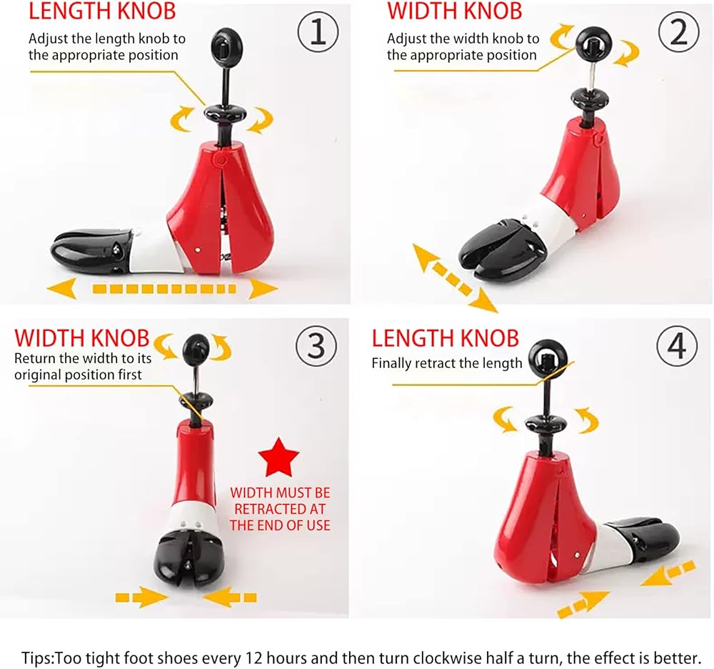 🥾【EASY TO USE】Simply insert the unisex shoe tree into the shoes, turn the black knob clockwise, and the shoes will stretch. For better stretching results, use leather spray.