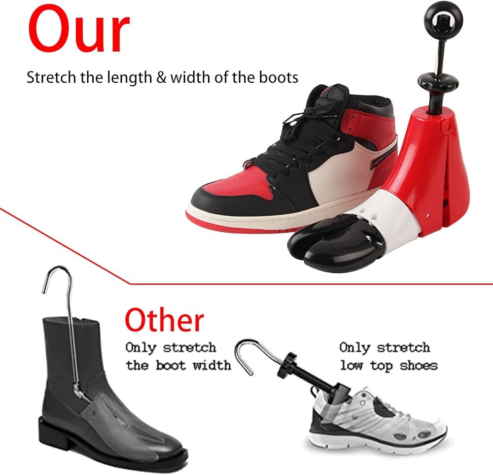 🥾【LOOSEN TOE BOX AND HEEL】The heavy-duty premium boot stretcher features a rotary shaft that stretches the tight toe box to provide extra length and width. (Cannot stretch the instep.)