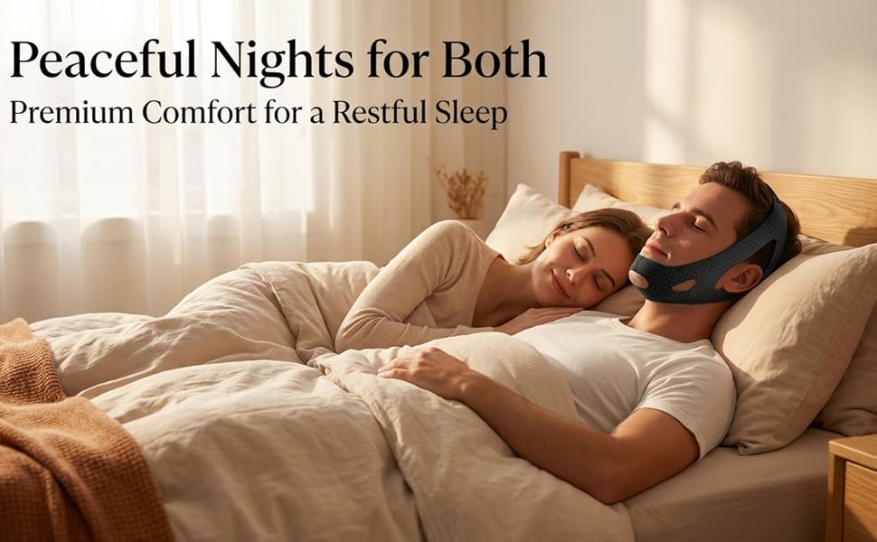• تبديد الحرارة المتقدم: تم تصميمه بفتحات مسامية مطورة ونسيج خفيف الوزن، ويضمن حزام سدادة الشخير تدفق الهواء الأمثل لمنع التعرق الليلي وتهيج الجلد.