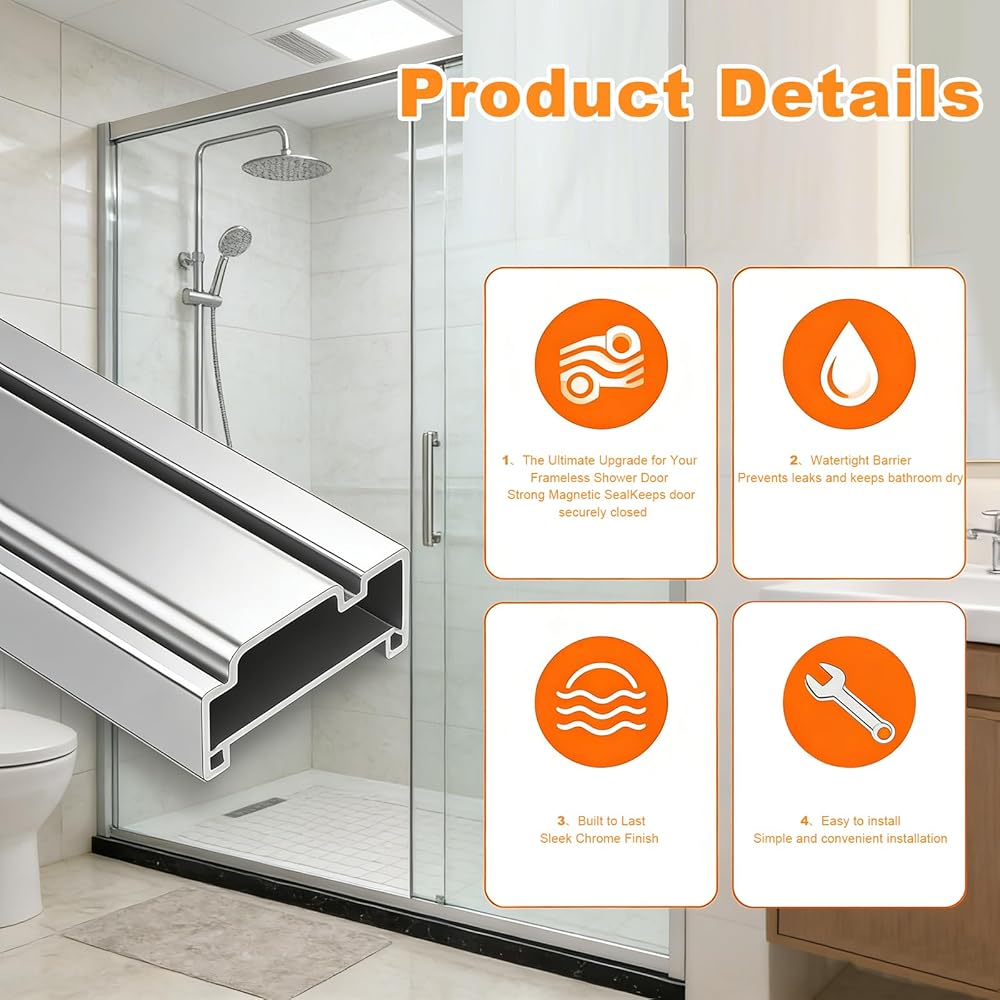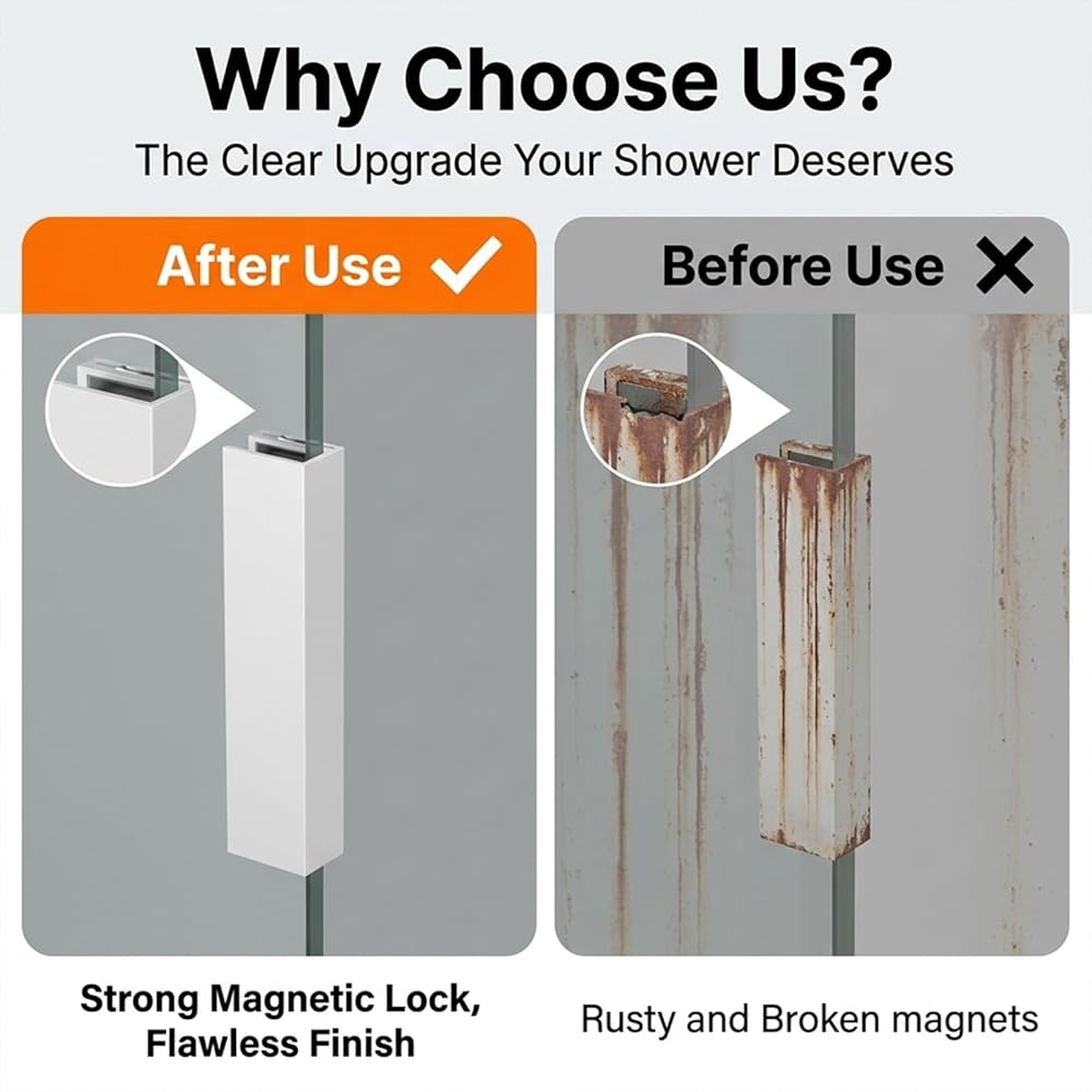 • Powerful Magnetic Seal: Say goodbye to slamming doors and unwanted gaps. Our high-potency shower magnets create a strong, silent pull that gently yet firmly closes your shower door. The integrated magnetic strip for shower door acts as a reliable shower door magnetic strip replacement, ensuring a tight seal that contains water splash, retains warmth, and keeps your bathroom floor dry for a safer, cleaner space