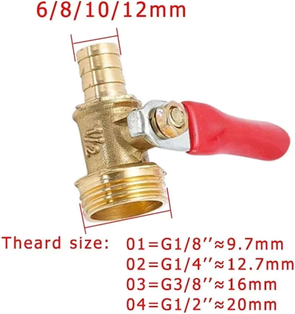 Brass Pneumatic Shut Off Ball Valve Pipe Fitting With 6/8/10/12mm Hose Barb And 1/8 1/4 3/8 1/2 Inch Male Thread Connectors 10Pcs