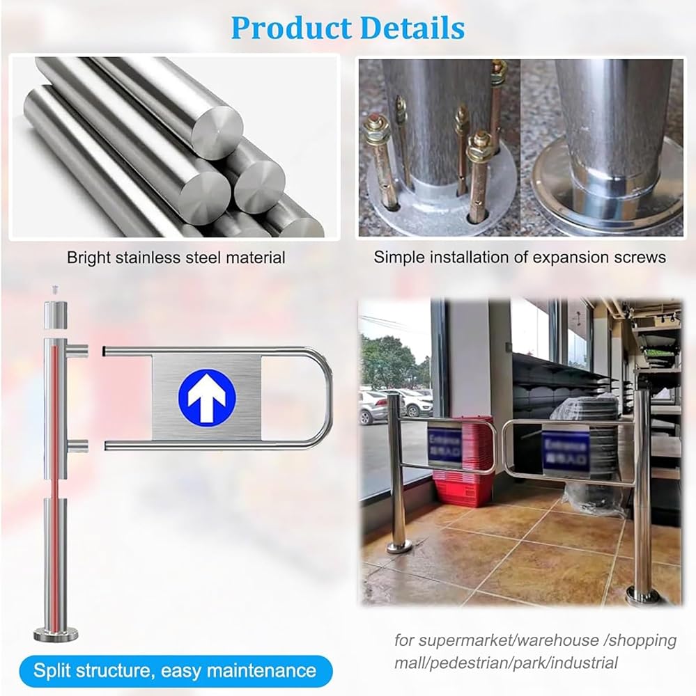 • Durable Stainless Steel Design: Crafted from 1.5mm-thick stainless steel, this Automatic Swing Gate is perfect for high-traffic environments such as Supermarkets, Warehouses, and Malls. The split structure facilitates easy maintenance and is built to withstand daily use, making it a reliable choice for busy settings.