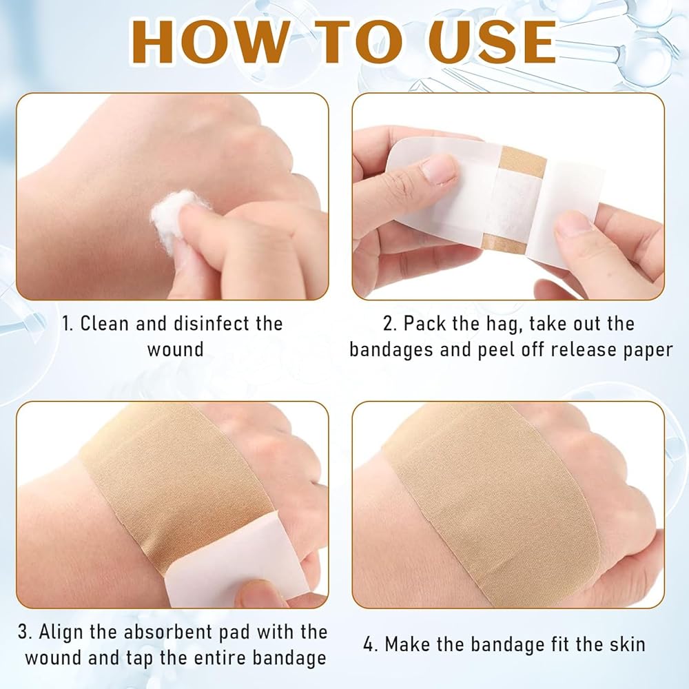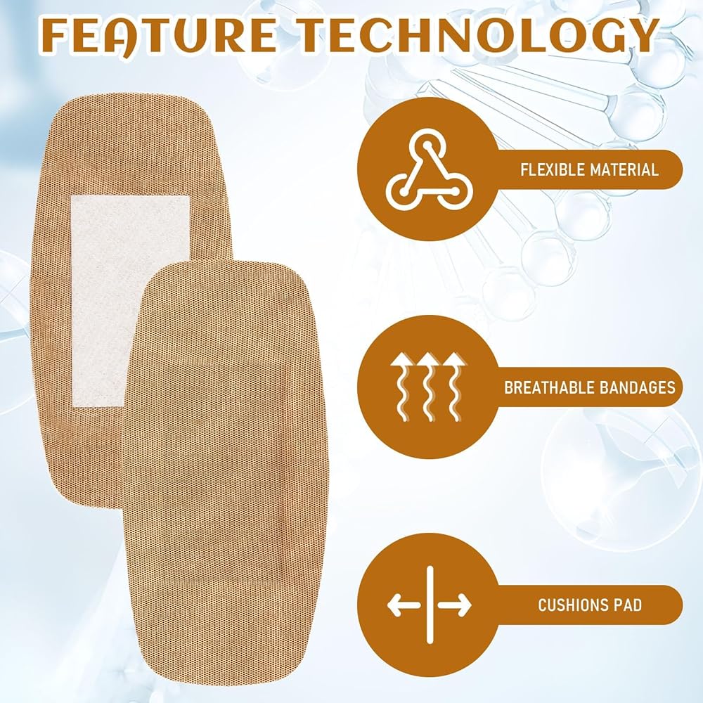 استخدامات متعددة: توفر مجموعة الضمادات الكبيرة الحماية للجروح والخدوش والحروق الناتجة عن الغبار؛ إنها مناسبة لتغطية مساحات كبيرة من الساقين واليدين
