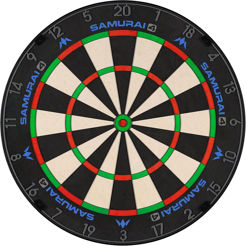 Level up your darts setup with the Mission Samurai 4 Dartboard - the new and improved dartboard from the popular Mission Samurai range! The White OR Graphite Edition in the new Samurai 4 collection is a professional high-quality bristle dartboard with several new features and improvements from the brand's previous dartboards. New manufacturing techniques offer an improved appearance and playing surface, with a vein free Sisal and rich vibrant non-fade colours for players of all abilities to enjoy. The superior and high quality Madagascan Sisal compaction ensures less bounce outs and its exceptional self-healing properties gives players a dartboard with a perfect playing surface that will last longer. The first ultra-thin wire construction of the Samurai 4 comes in a striking white OR graphite colour, which enables the darts to glance over and into the scoring areas on the dartboard, meaning less bounce outs and damage to the darts. The new and improved number ring also ensures players can focus on their own game. This competition-quality dartboard has a symmetrical design, with the Mission and Samurai 4 branding repeated around the board to give players a clean-looking setup even after multiple rotations. The Samurai 4 comes with adjustable stabilisers to help keep the dartboard stable and correctly positioned at all times.