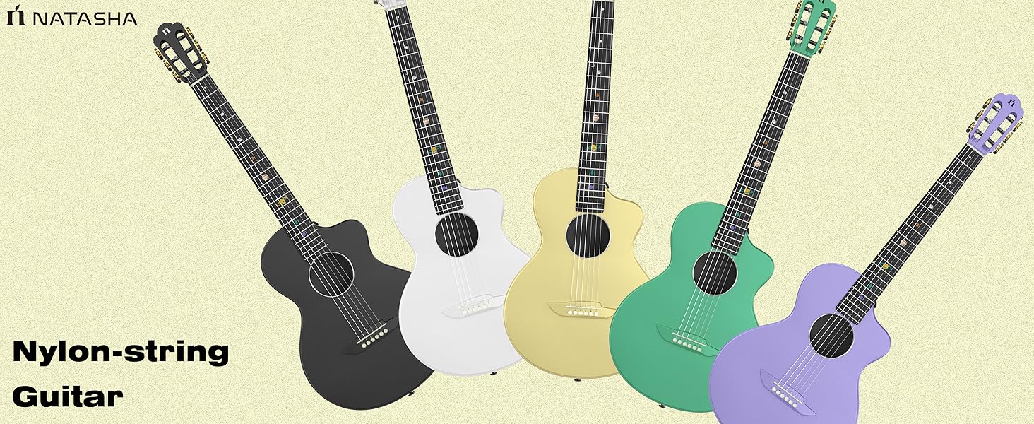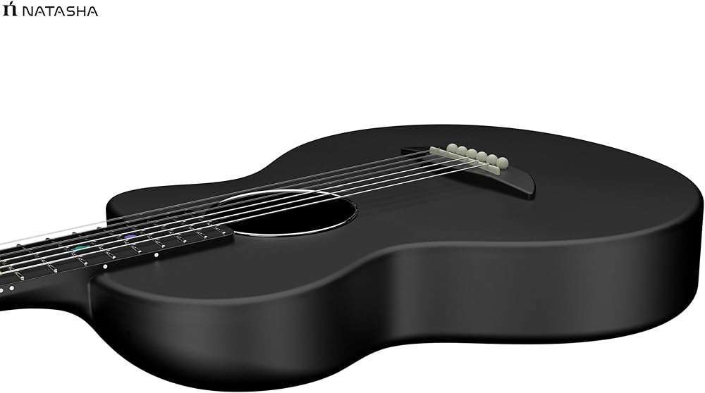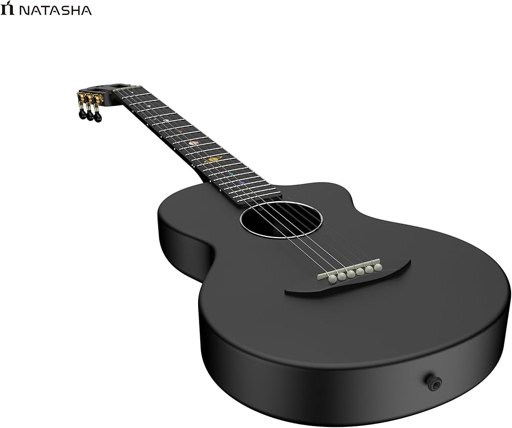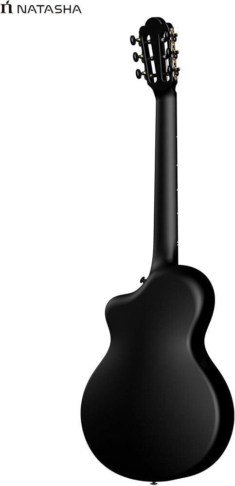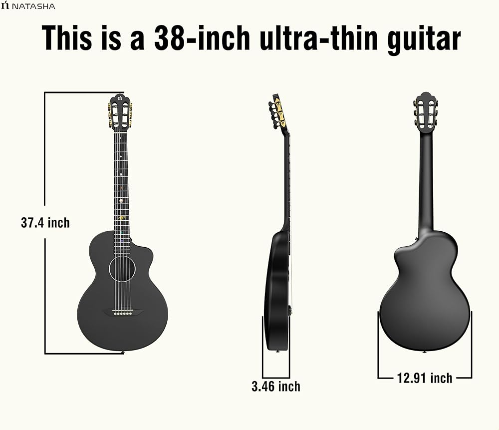 جيتار صوتي من ألياف الكربون من ناتاشا، جيتار من النايلون مقاس 38 بوصة، جيتار متين رفيع للغاية مكون من 6 أوتار للمبتدئين (أسود)
