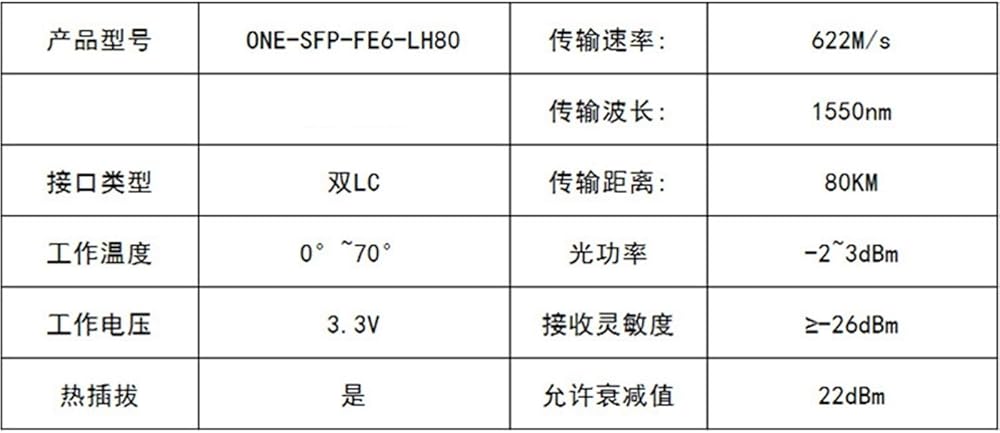 PT7620-41-2W 100M أحادي الوضع 622M1550nm80km الوحدة الضوئية SFP