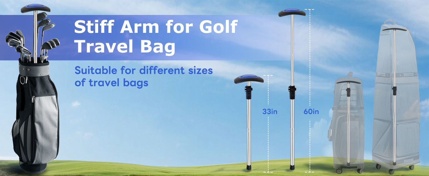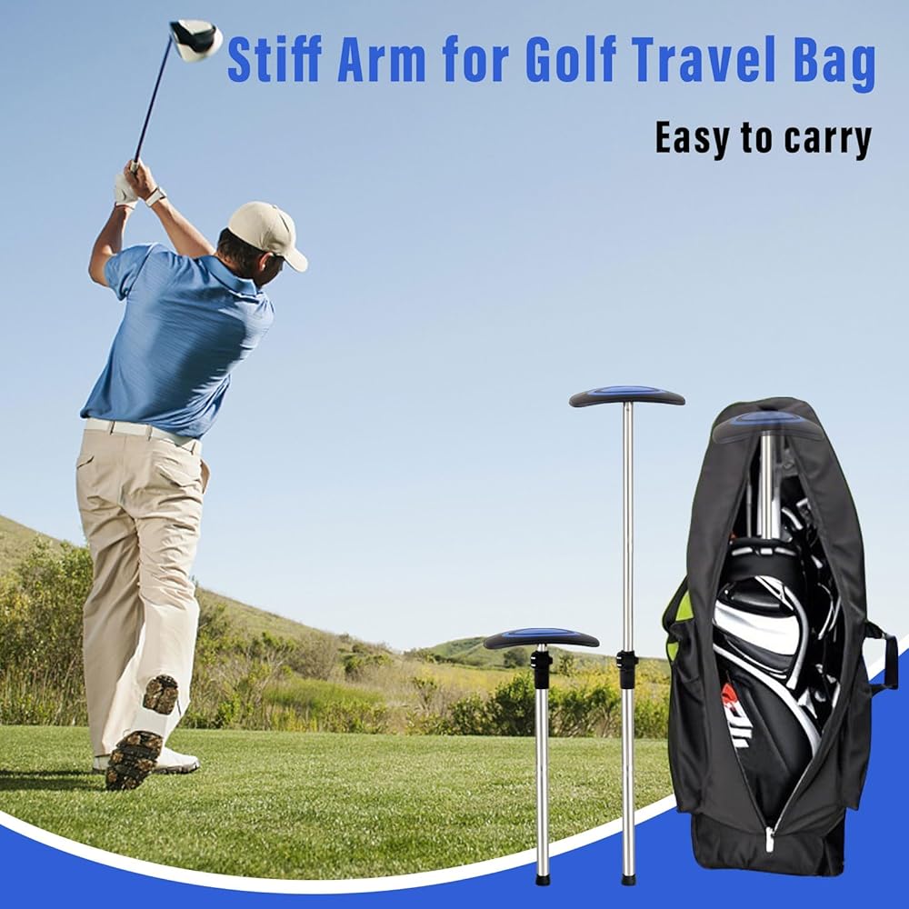 مادة عالية الجودة: هذا الذراع المتين لعمود دعم حقيبة سفر الجولف مصنوع من الفولاذ المقاوم للصدأ السميك ومادة غطاء البولي بروبيلين، قوي ومتين، لا داعي للقلق بشأن كسر نوادي السفر أو مشكلة الانحناء، المزيد من المساعدة على حماية نواديك أثناء السفر.
