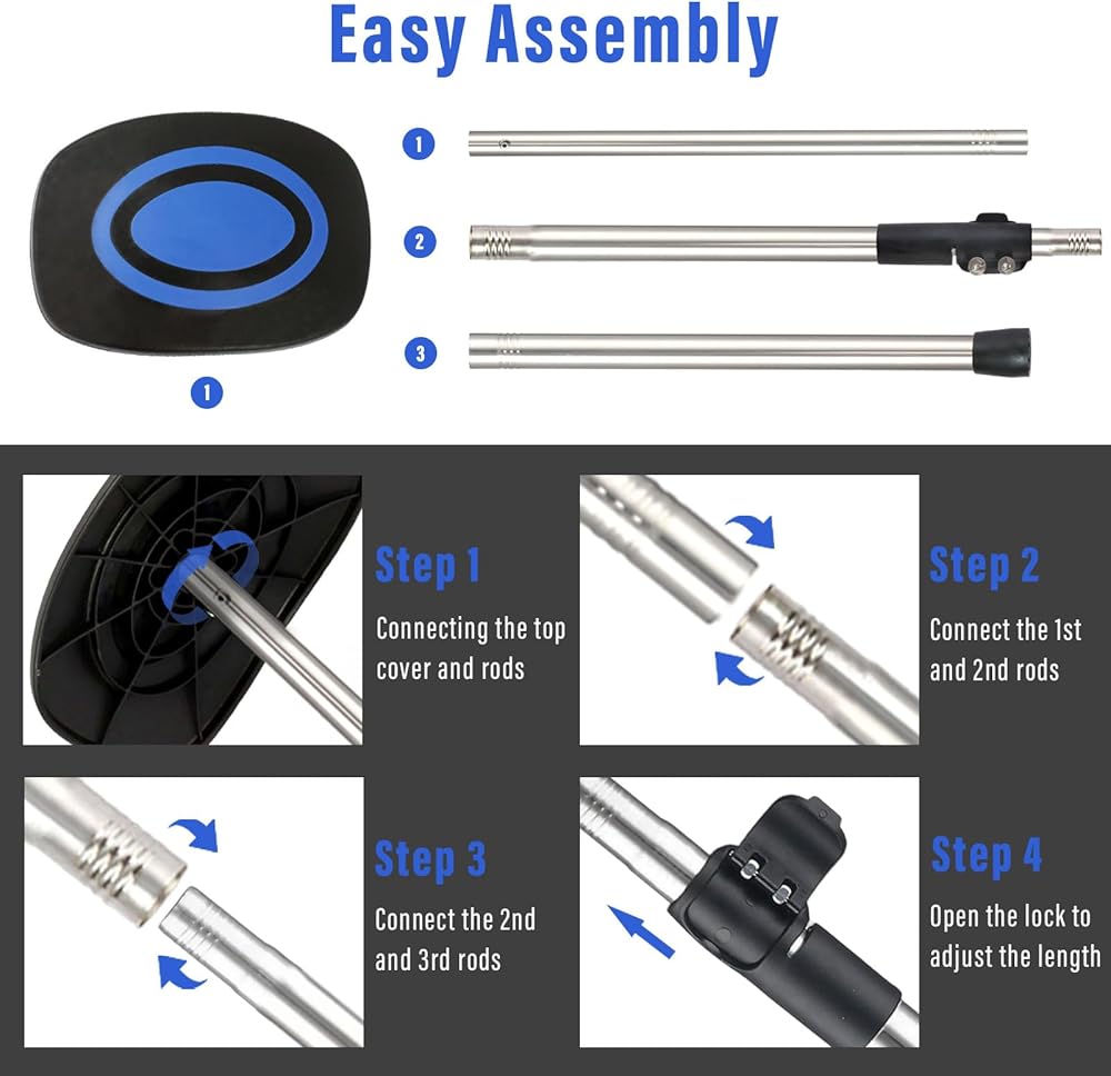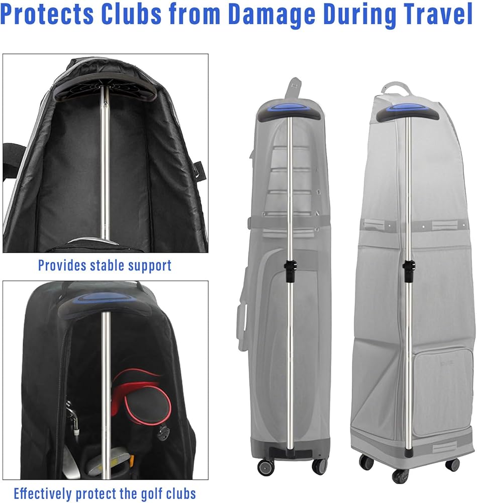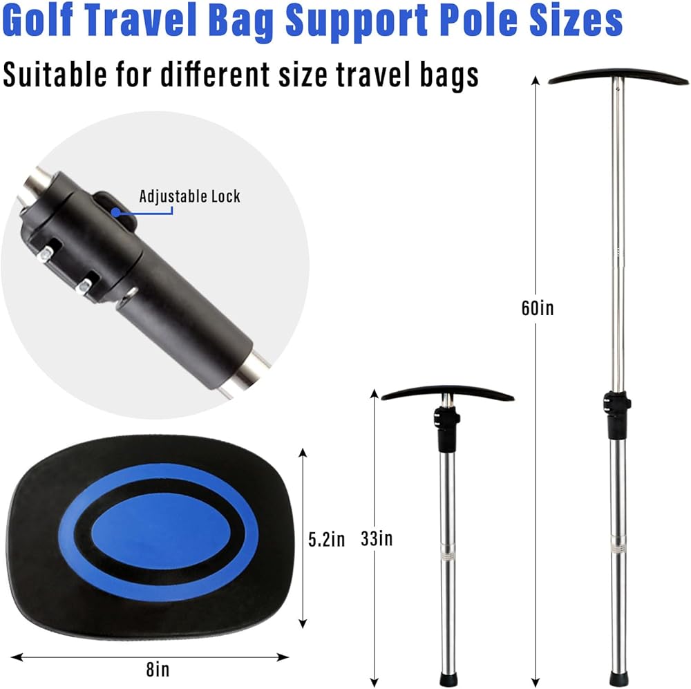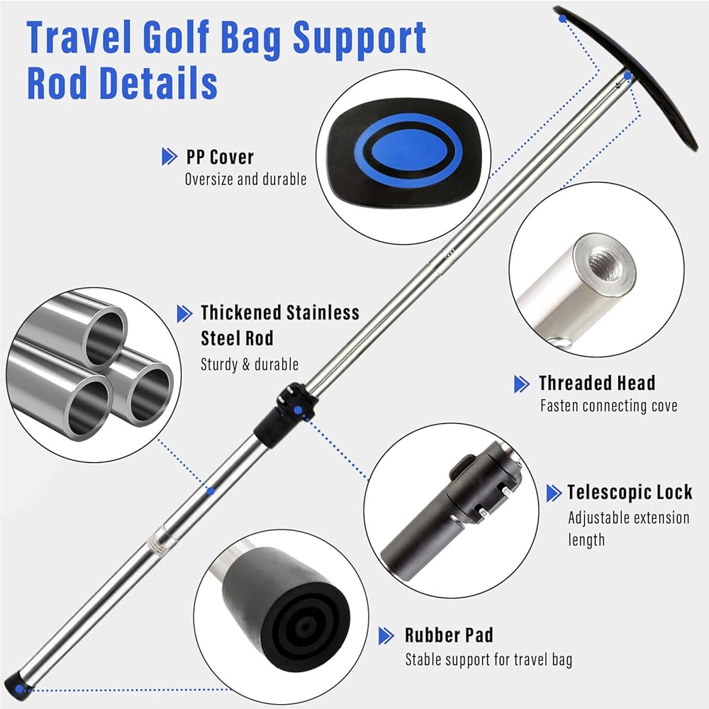 عمود دعم حقيبة سفر الجولف، 33 بوصة - 60 بوصة، قضيب دعم حقيبة سفر الجولف تلسكوبي قابل للتعديل، واقي نادي الذراع الصلب من الفولاذ المقاوم للصدأ (غطاء أزرق)