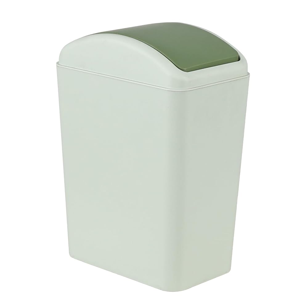 سلة مهملات رفيعة سعة 4.5 جالون، سلة مهملات صغيرة مع غطاء متأرجح، عبوة واحدة (أخضر)